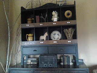 We stacked the bookcase Glen made on top of the deco sideboard. It's massive!